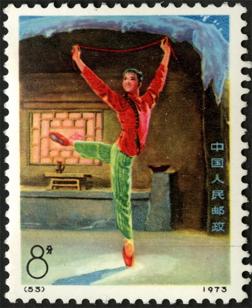 1973年9月25日,为宣传“革命样板戏”,邮电部发行了《革命现代芭蕾舞剧<白毛女>》邮票,全套4枚。
