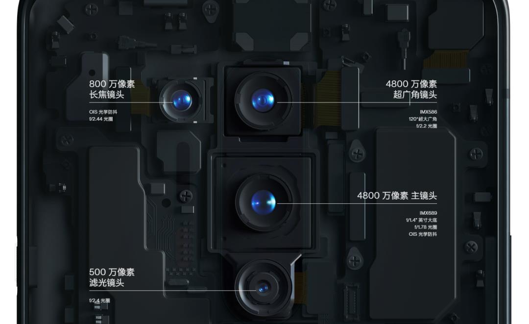 一加8 Pro后置4颗镜头,4800万像素主摄(IMX689)+4800万像素超广角(IMX586)+800万像素长焦+500万像素滤光镜头。