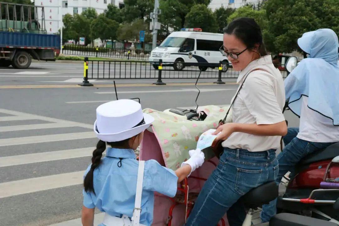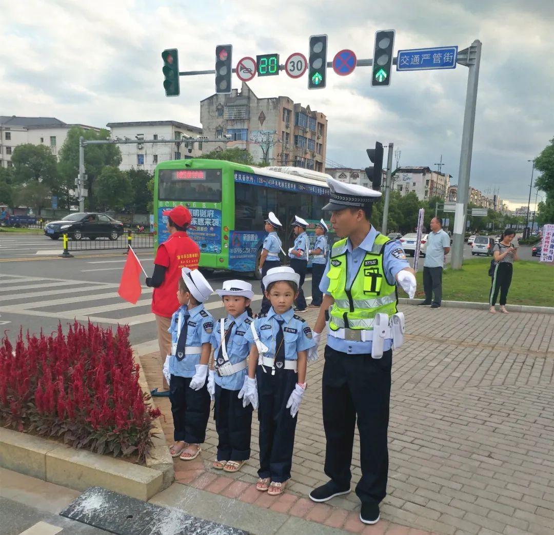 最后,14名参加活动的同学们统一着特制的小交警制式服装,在交警和志愿者及家长的陪同下,来到行政中心红绿灯、人社局红绿灯现场体验交警执勤,开始了他们“小手拉大手,共创文明城”的雏鹰行动。天气虽然炎热,但挡不住孩子们的热情;汗流浃背,也掩盖不住孩子们一张张纯真的笑脸。看他们认认真真、一丝不苟的样子,俨然一位位“小交警”。通过民警带领小学生实地观摩路口的交通通行情况,讲解交通安全常识,现场带领小学生们对骑乘电动自行车不戴安全头盔、行人随意横过马路、闯红灯等不文明交通行为进行劝导,赢得了过往群众的点赞。