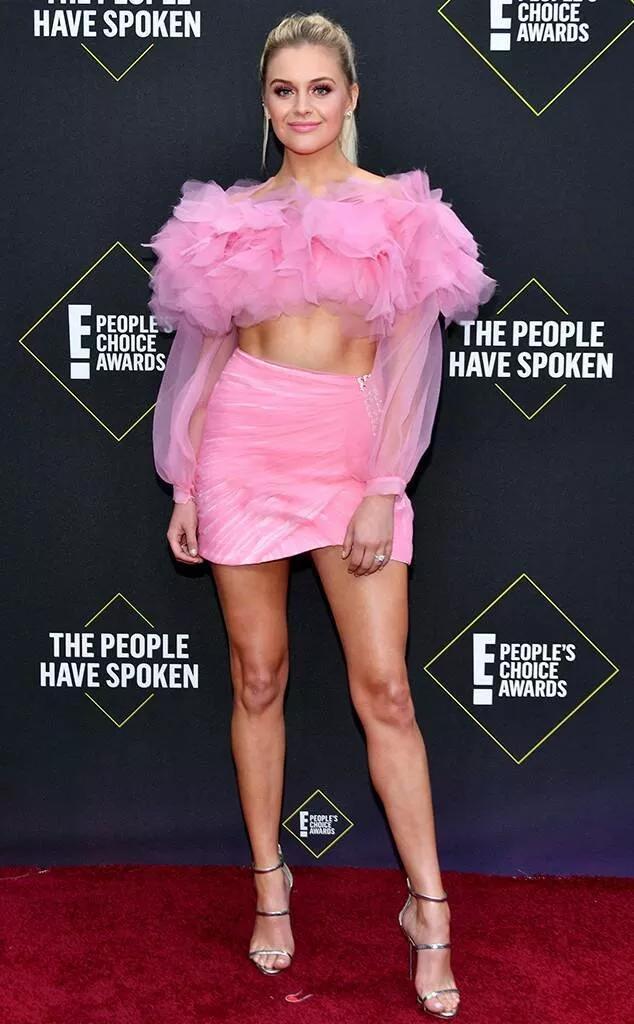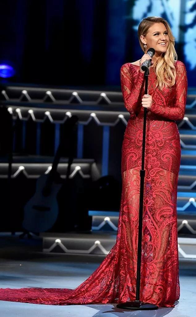 在2017年的CMA颁奖典礼上,她选择了一件带有appliqués图案的Michael Kors白色礼服。