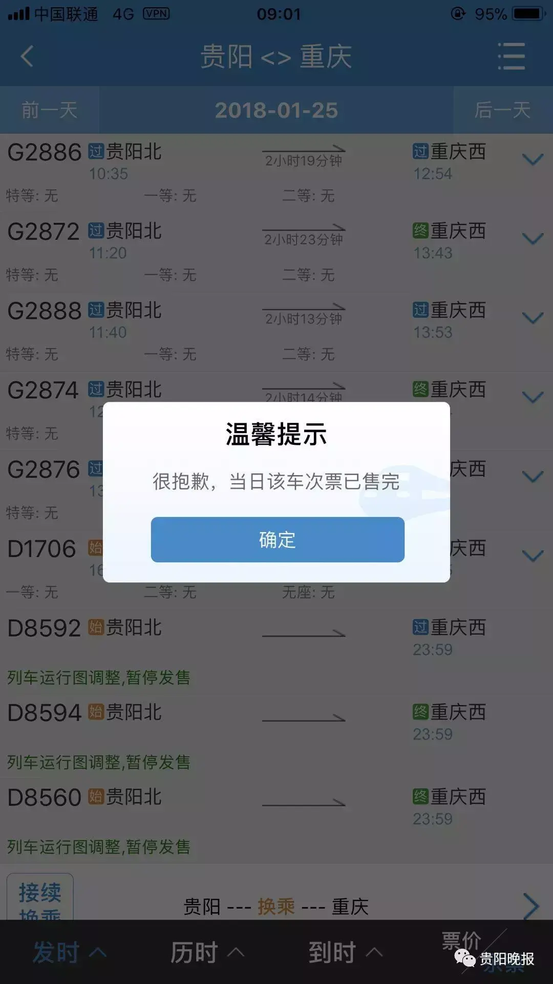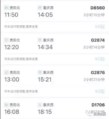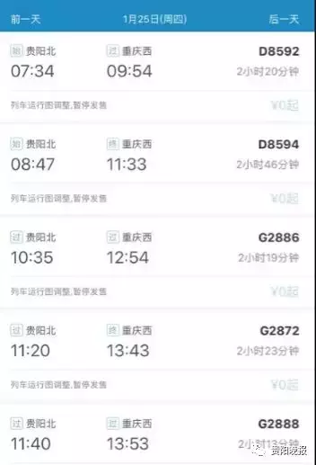 53秒!25号贵阳北-重庆西车票售完!附部分站点票价→