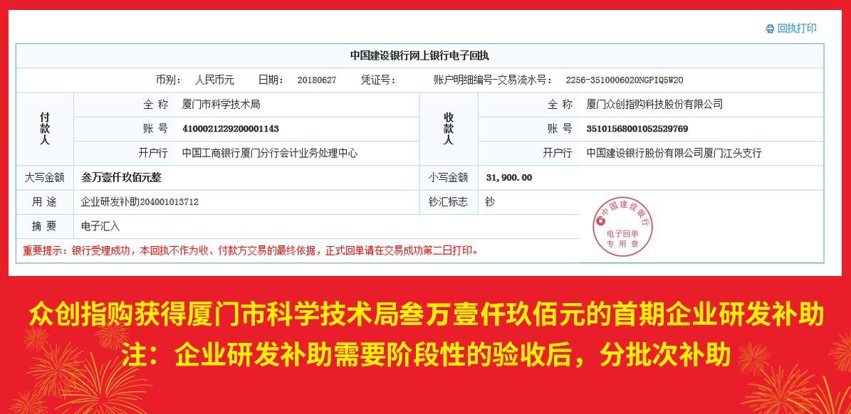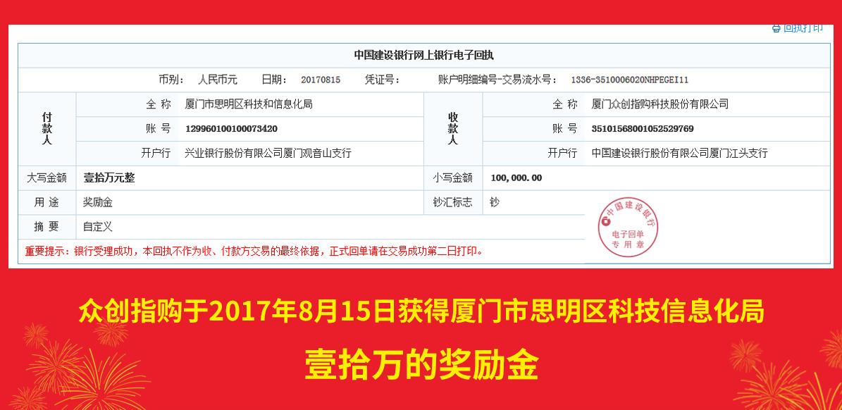 2017年8月获得科技信息化局10万奖励金