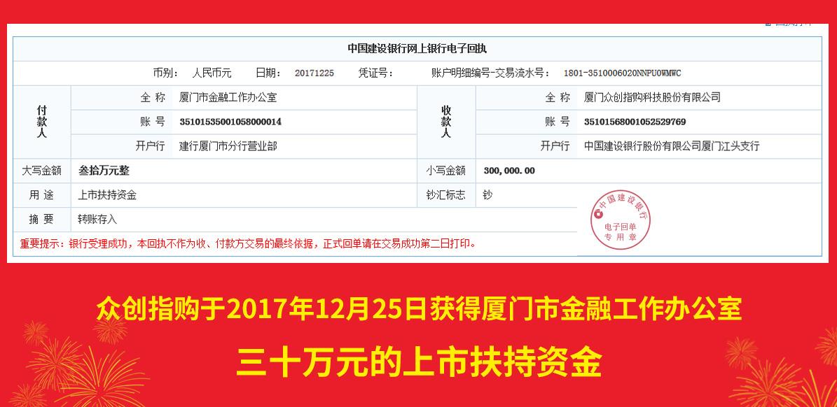 2017年12月获得金融办30万上市扶持资金