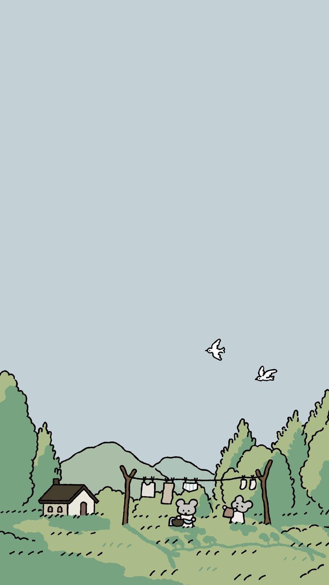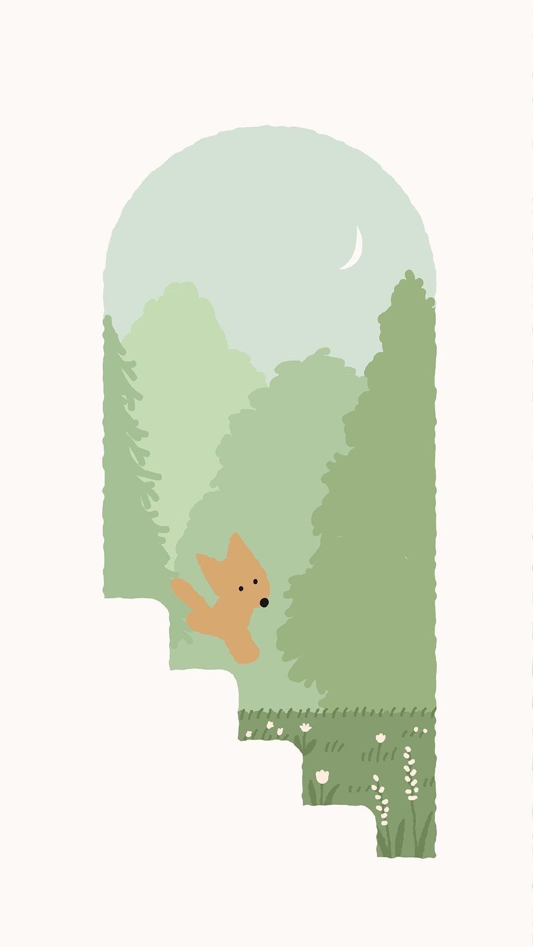 小清新森系治愈插画壁纸 | 想走在一片安静的森林里 当我跟随晚风时 我想我会找…