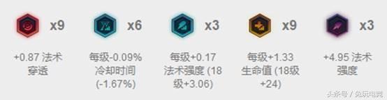 3精华法强 9红色法穿 9黄色成长生命值 6蓝色成长减CD3蓝色成长法强