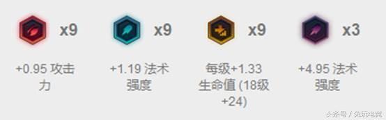 3精华法强 9红色攻击力 9黄色成长生命值 9蓝色法强