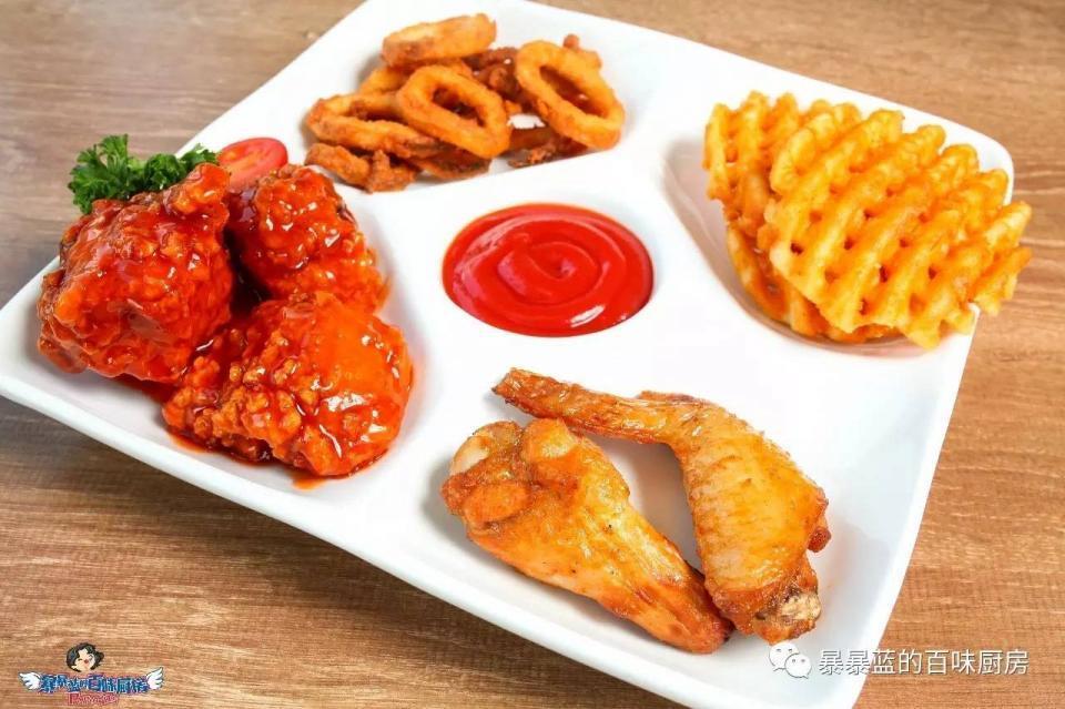 富贵红火热辣鸡、浓情烤翅、酥炸鱿鱼和美式大薯格,多种小食一盘搞定。