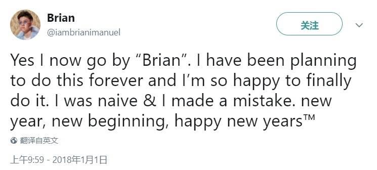 Rich Chigga,在IG上发的消息,大概意思可以理解为“我就想叫Brian怎么地吧,以前起了个这么个名有点失误,新的一年嘛换个新名字图个好彩头。”并且直接把IG的昵称改为了“Brian”,Brian是他的真名,虽然改名是他自己的事,但是这么草率真的好吗!