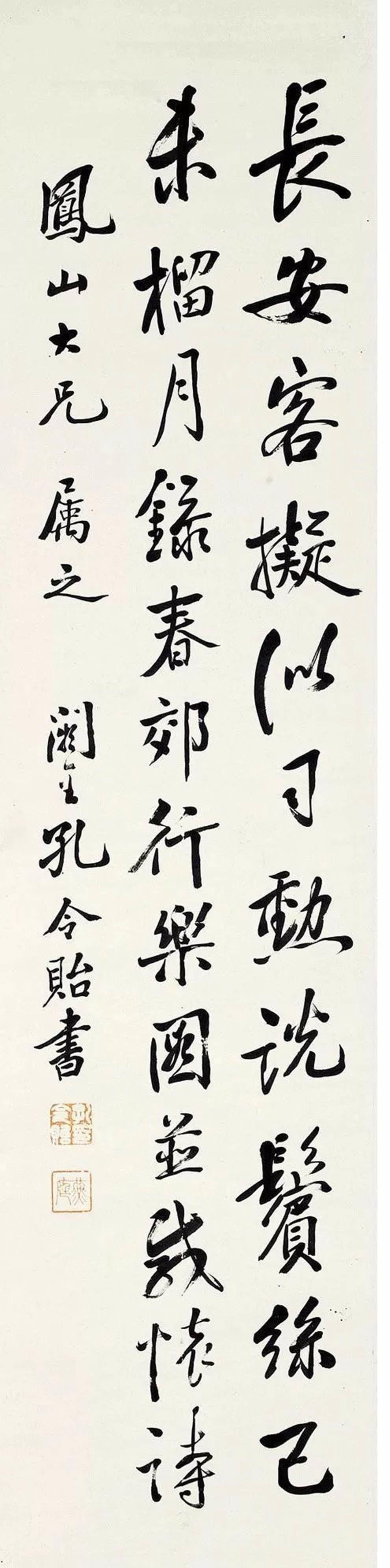 孔子七十六代孙,孔令贻行书《春郊行乐图并载诗》四屏