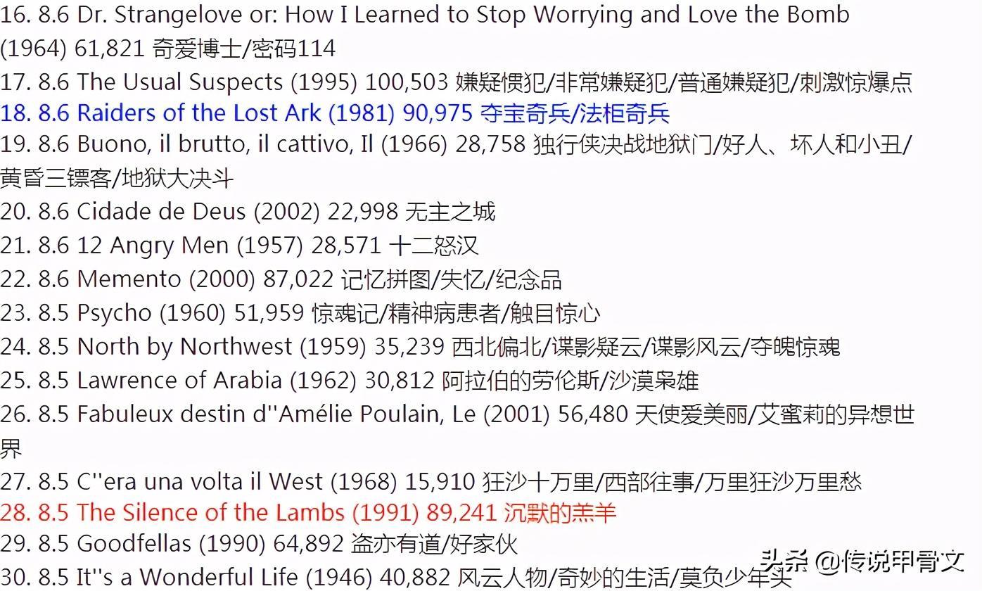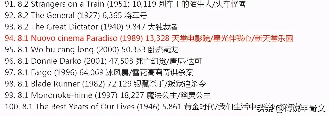 本排名是由《帝国》杂志的10,000名读者、150位好莱坞指标人物以及50位著名电影评论家共同投票表决选出。总的来说,还是具有一定的权威性的一份排名,但是说好的全球电影排名,几乎全是欧美的电影入选,仅有日本小津安二郎的《东京物语》排名第67,韩国的朴赞郁的《老男孩》排名第64入选,国产电影尚无一部入选,这傲慢与偏见不言而喻。