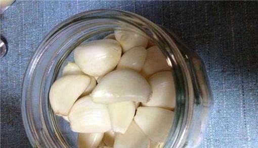 然后,我们找一个玻璃罐,用开水消毒,然后自然晾干其中的水分,将剥好的大蒜放入玻璃罐中。