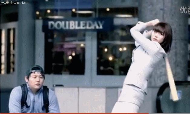 因为当年给丰田汽车做广告,本来以为她要做做样子,没想到身穿ol服装的她一棒打中了,而且力度相当的大!因此而一棒成名。