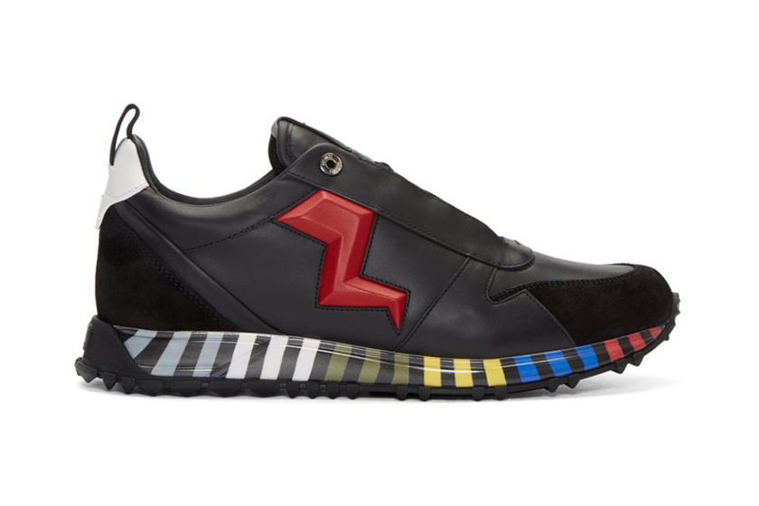 奢侈品牌也偏爱实穿且发挥空间巨大的运动鞋,继Valentino、D&G之后,Fendi 此番带来了最新的运动鞋款设计,一道抢眼的红色闪电首先映入大家的眼帘...黑色皮革、麂皮交织的鞋面以特别优质的材质呈现,以而鞋底则采用多色条纹,打造摩登感。最后选用橡胶物料打造鞋底,为这双意大利制鞋款完美收尾。