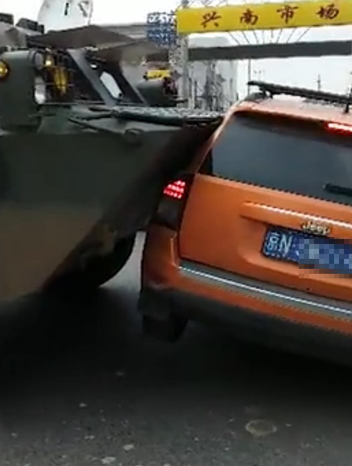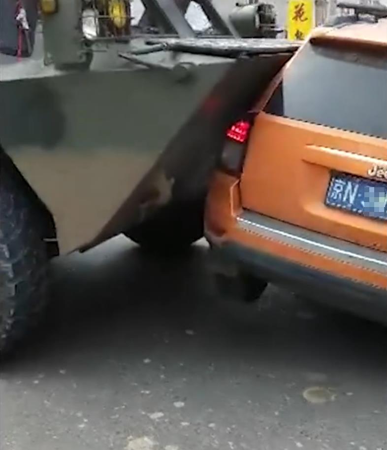 近日,网上流传的一段视频引发网友热议,一辆地方女驾驶员驾驶的北京牌照橘黄色“JEEP 指南者”与解放军某部轮式步战车发生碰撞。