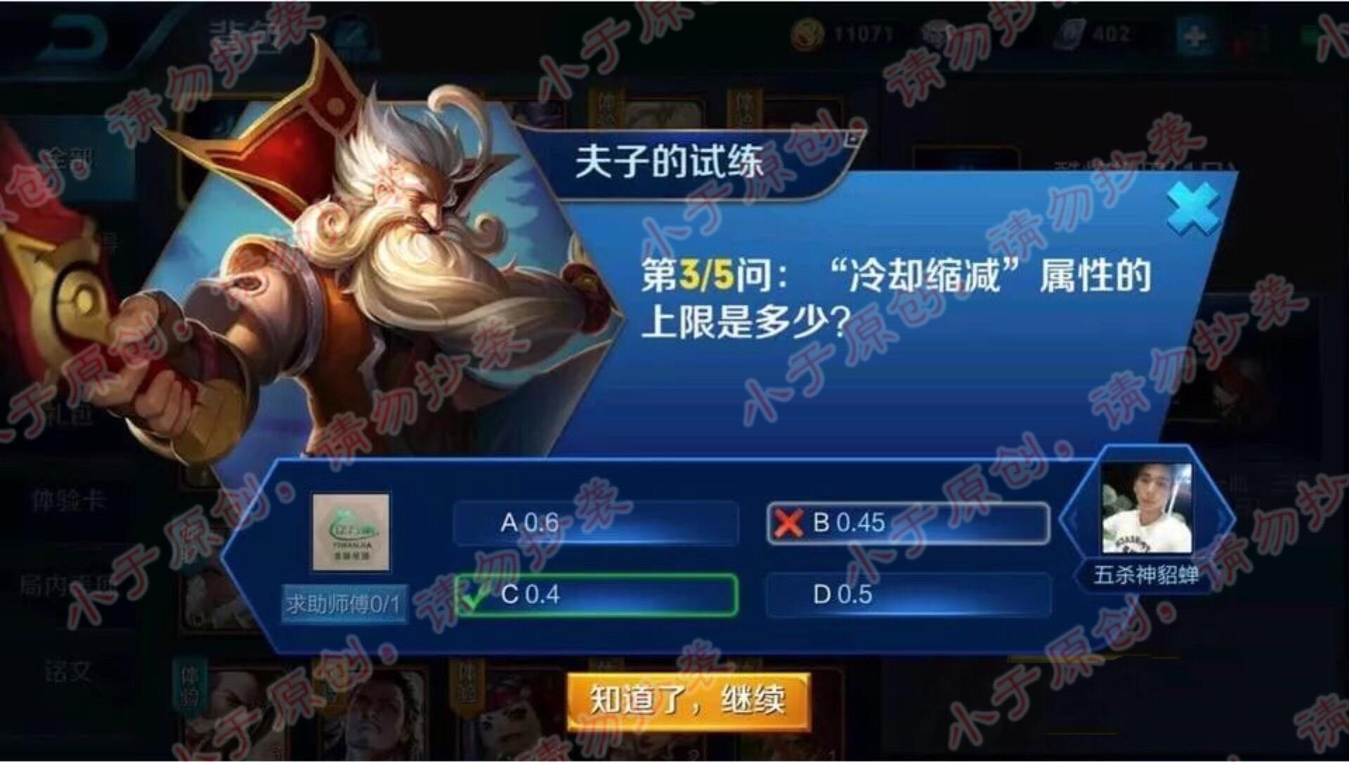 有图有真相:王者答题相同的题两次答案不同?现在还有夫子试炼?