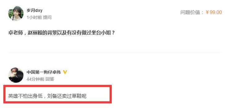 一位微博网友问了一个很令人愤怒的问题「卓老师,赵丽颖的背景以及有没有做过坐台小姐?」