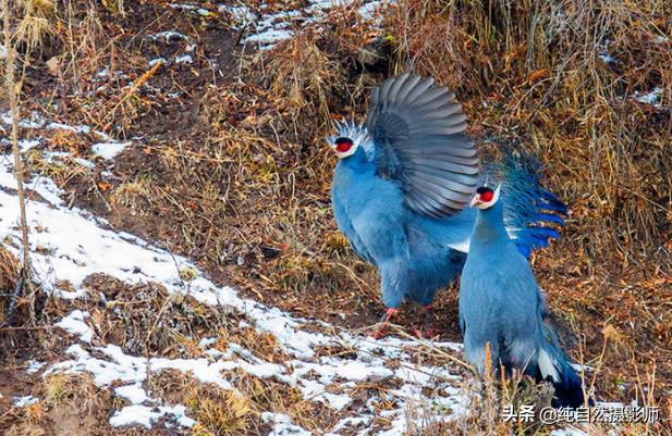 蓝马鸡(学名:Crossoptilon auritum)是珍稀名贵的禽类,头侧绯红,耳羽簇白色、突出于颈部顶上,通体蓝灰色,中央尾羽特长而翘起。尾羽披散下垂如马尾,故名蓝马鸡。