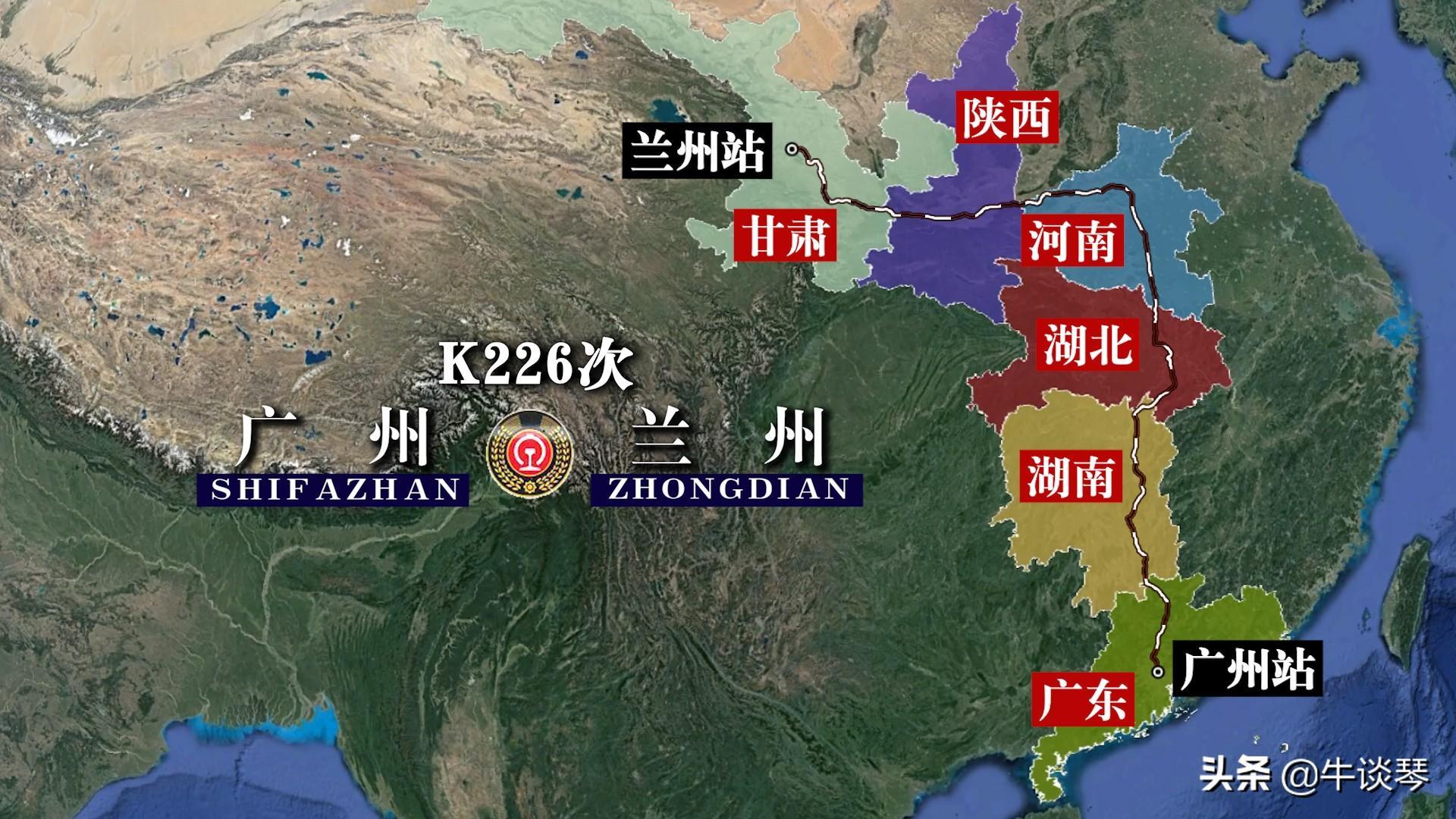 K226次列车运行线路图:广州开往甘肃兰州,全程2792公里