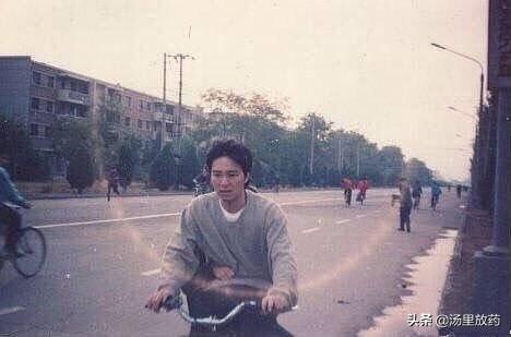 坐在自行车后座的朱茵露出了爱情般的笑容,看的出来朱茵很幸福。
