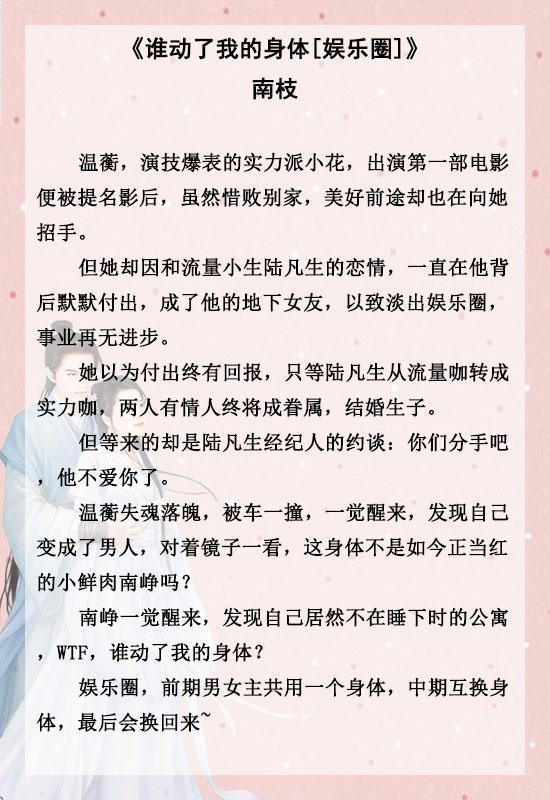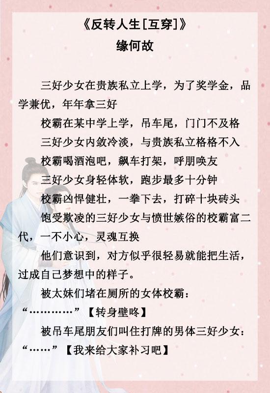 《反转人生[互穿]》《谁动了我的身体[娱乐圈]》《本宫起床就性转》《朕的厂花能断案》《我和反派互穿了 》