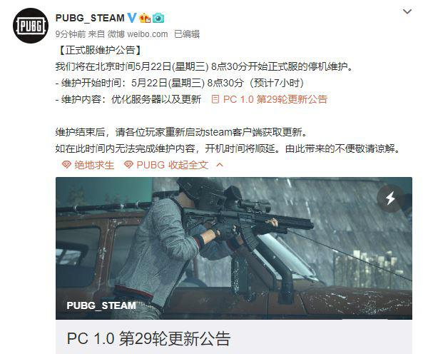 【绝地求生5月22日正式服维护公告】