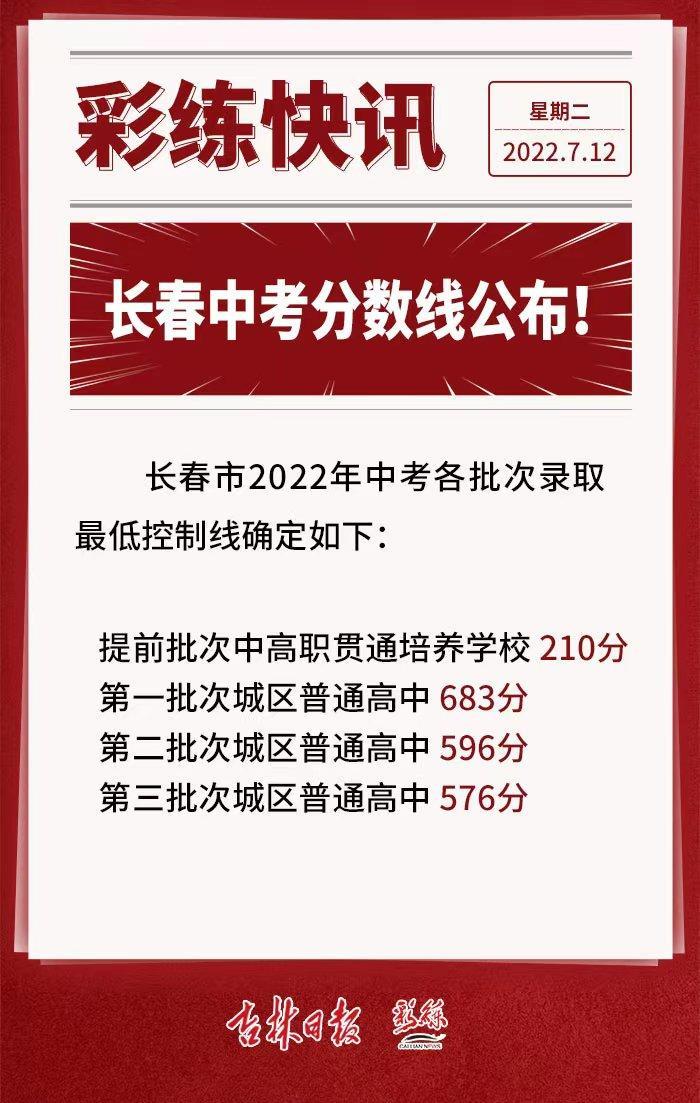 刚刚,长春市招生委员会发布,经研究决定,长春市2022年中考各批次录取最低控制线确定如下: