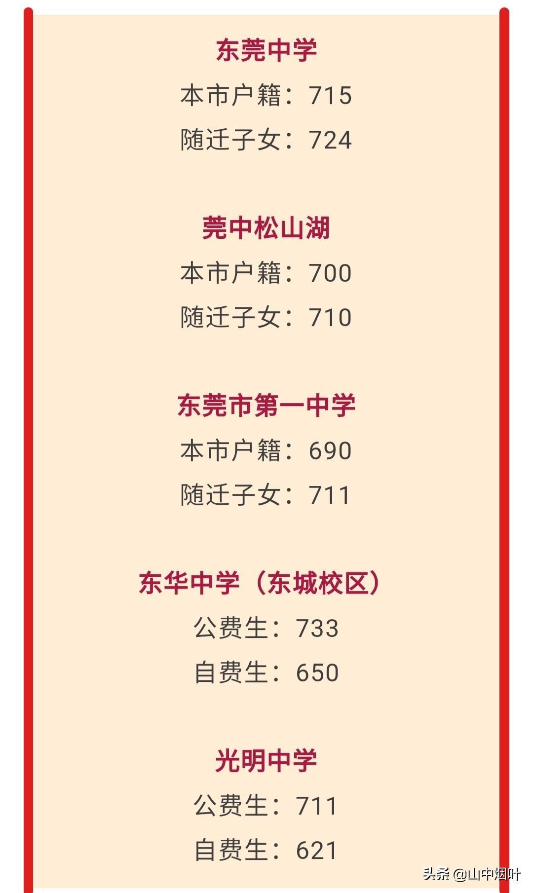 今年东莞中考分数线公布!莞中715,东华733