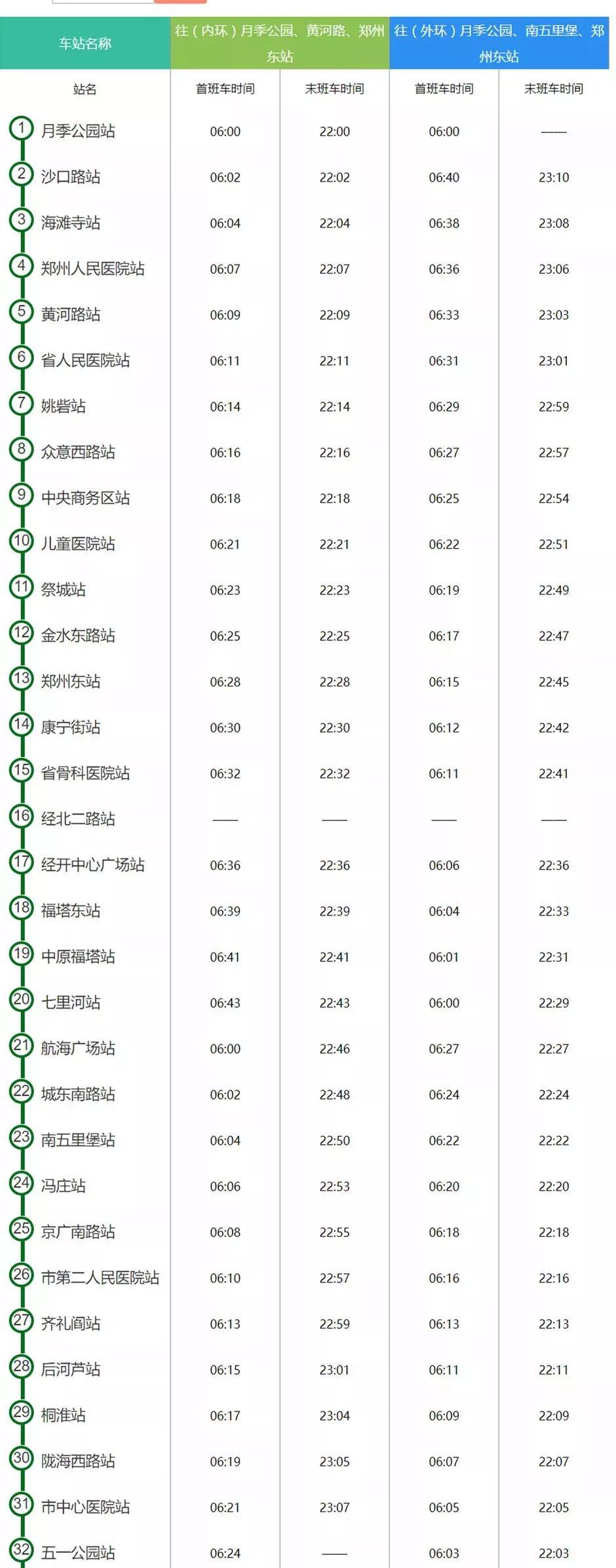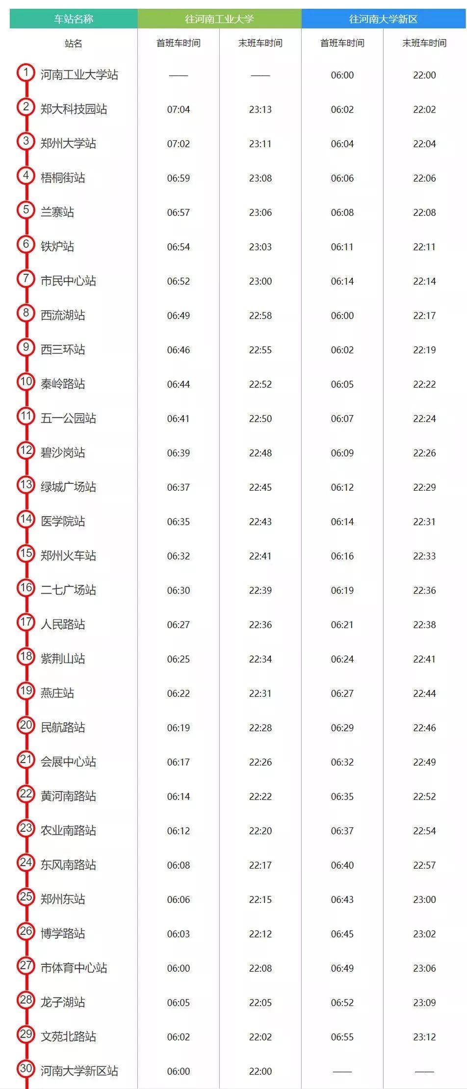 郑州地铁5号线时刻表来啦!
