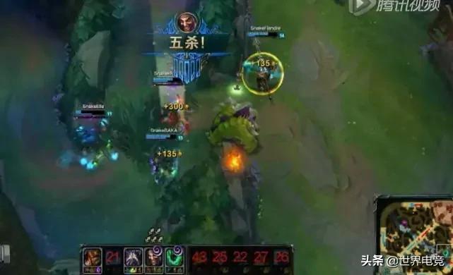2015年春季赛常规赛在对战ig的比赛中,更是拿出德莱文,砍下五杀,也是lpl德莱文五杀第一人,更是一战成名。导致了在当年的比赛中,snake的德莱文就没有放出来过