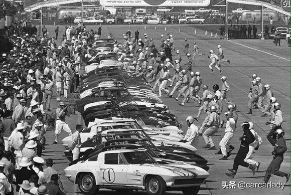 除了滚动发车,还有勒芒式发车,这个就比较有意思了,车手要先比赛跑、再比谁系装备快,然后才是发车。很有互动性,增加了趣味性,不确定性。感兴趣的朋友可以网络搜索相关的信息,挺有意思的。看照片是不是超有历史感。