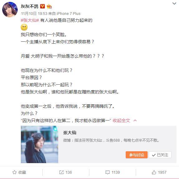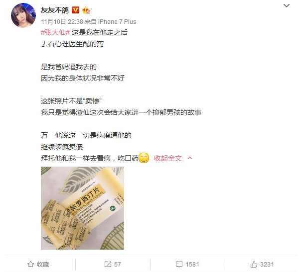 而且在分手之后,灰灰爆出来了一系列的张大仙的黑料。