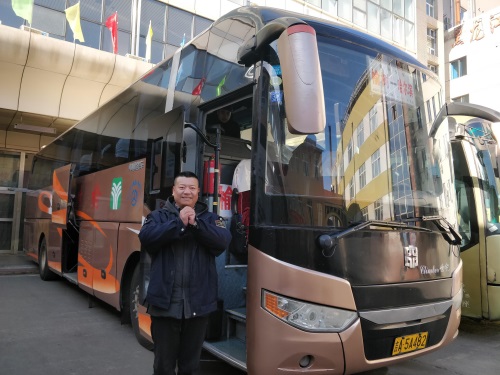 除夕南岗客运站哈尔滨到榆树最后一趟班车驾驶员 祝大家新年快乐 记者 栾德谦 摄