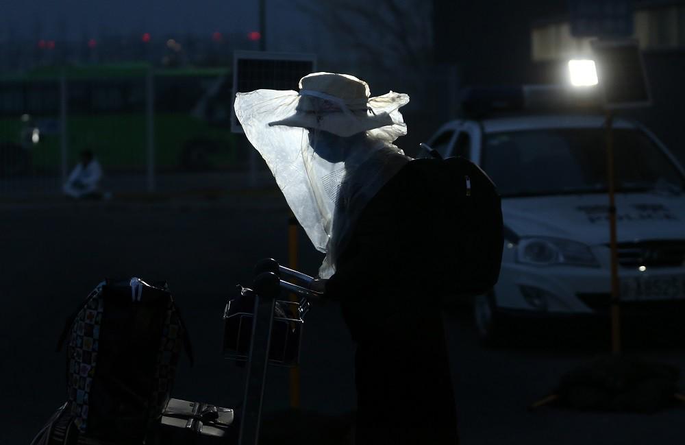 “全副武装”的旅客。(中国日报记者 邹红 摄)