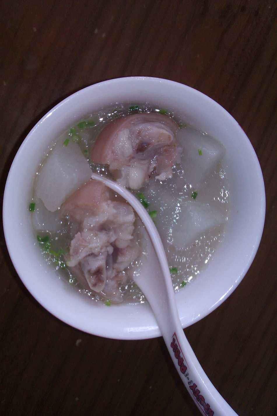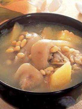 1,猪脚、鸡腿洗净切块,开水肥去血污,装蛊,加盐