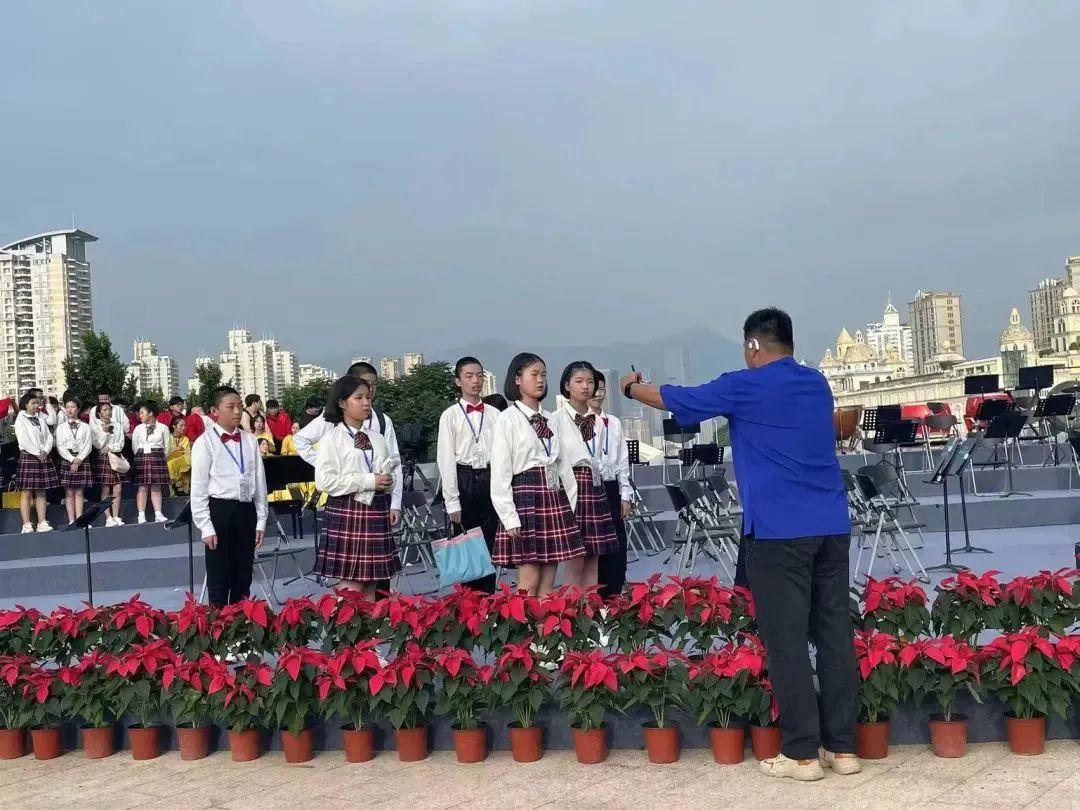 2023《江山如画》系列交响音乐会于9月16日在福州闽江之心青年会广场进行取景拍摄录制工作。福州十中十分荣幸受邀参加节目拍摄。40名初一合唱团同学成为童声合唱演员,与福建省艺术职业学院、福州市小茉莉合唱团、福州海峡交响乐团同台献福祖国。