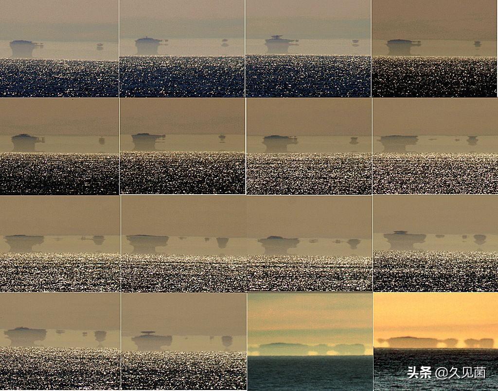 你看到的就是美国的法拉隆群岛上呈现的复杂蜃景,这组图一共有16张图片,在前14张图片中的法拉隆群岛上的复杂蜃景呈现出被拉伸和压缩的样子。最后两张图片拍摄于日落时分,这个时候的大气环境发生了变化,图像不再是复杂蜃景,而是呈现出简单的上蜃景。