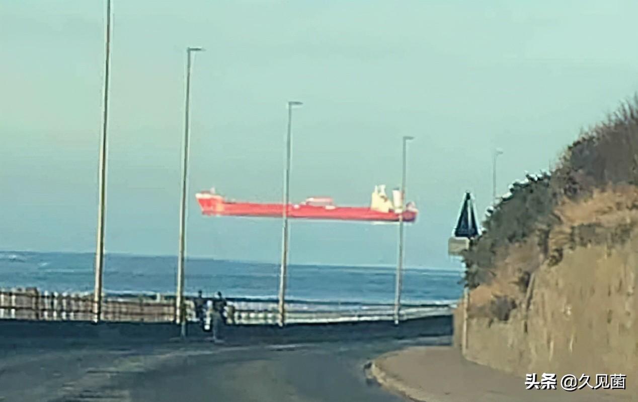 其实背后的真相,这艘船漂浮在空中的现象是一种很少见的气象现象:复杂蜃景。