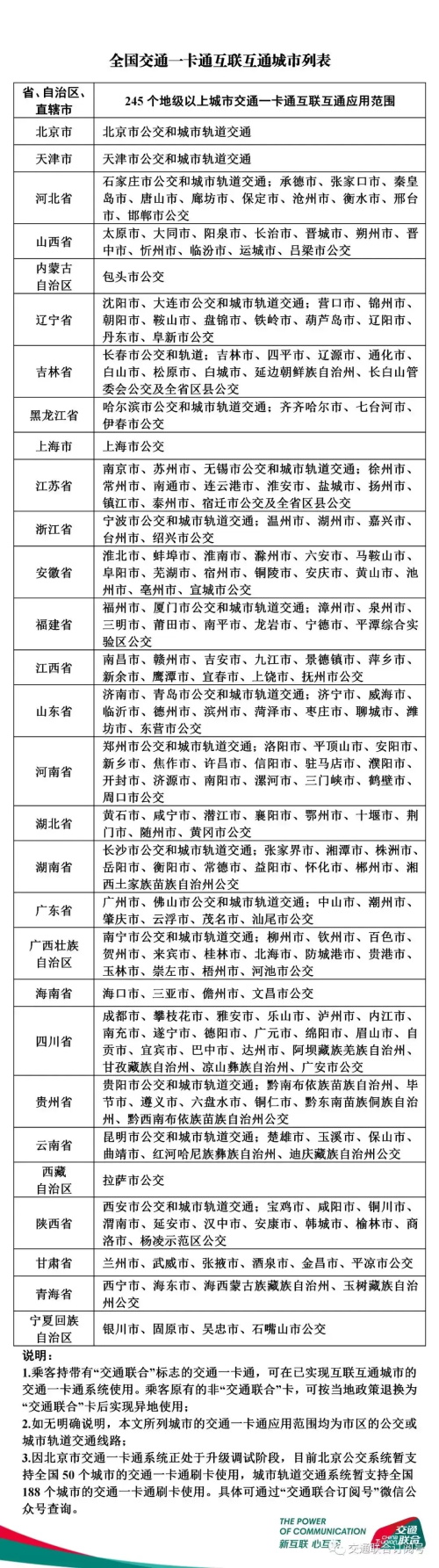 “交通联合”卡是全国各地交通行业依照交通运输部互联互通标准发行,可在全国290个城市实现互联互通,相关票价政策依照各地政府主管部门公布的标准执行。