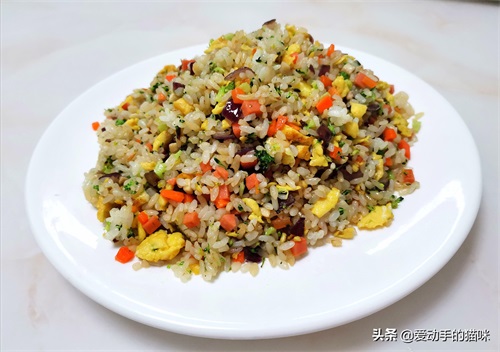 这道什锦蛋炒饭虽然貌不惊人,但里面蔬菜较多,营养丰富,口味也比较清淡,非常适合给小朋友吃。
