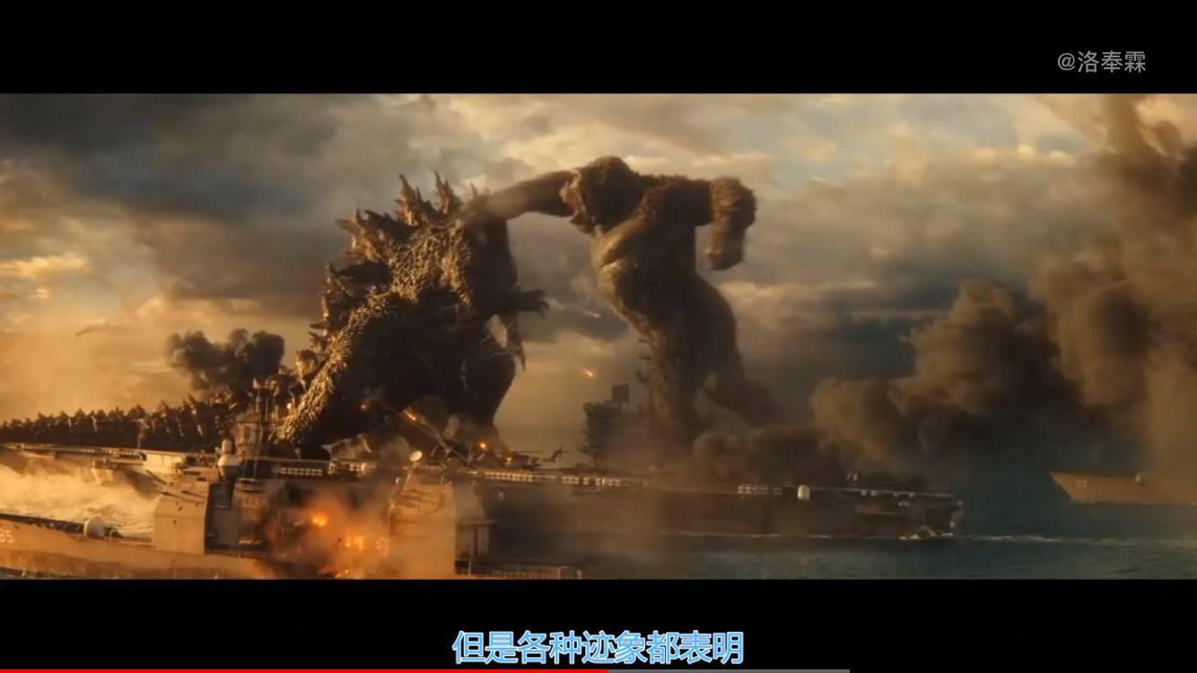 骷髅岛的靓仔突然长高了,与哥斯拉面对面地站在航母上几乎是一般高大........