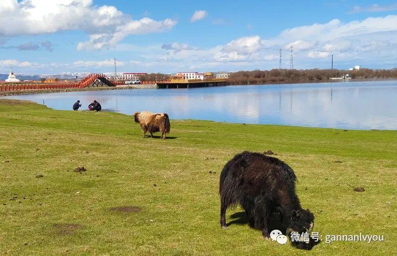此行第五站:桑科草原,它是甘南最美夏季牧场,但这里不仅仅有草原,还有一大片湿地,水光潋滟,牛羊觅食,说不出的安逸舒畅,拍照留念,再适合不过了。
