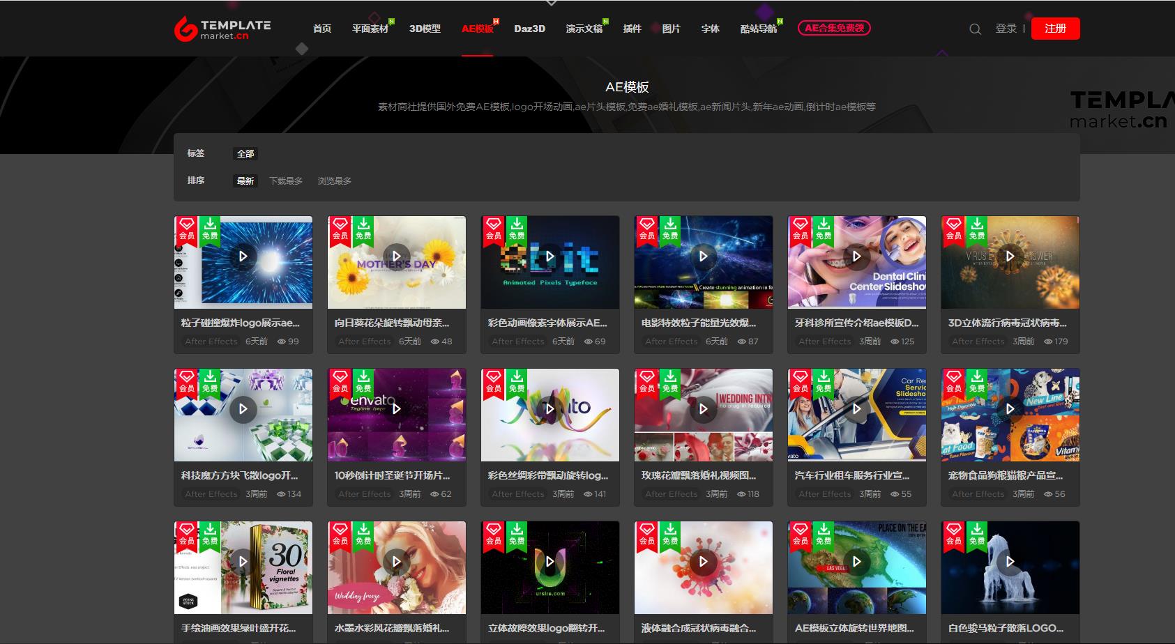原来叫顶尖特效,是一个综合性素材网站,除了免费的AE模板外,还有PS系列的笔刷,各种3D模型,图片素材等等,下载也非常方便登陆账户无需充值,点击免费下载即可。