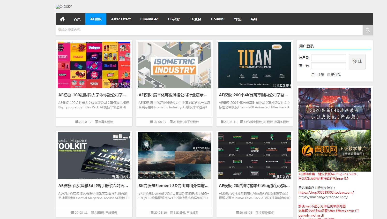 网站上有很多AE的资源,分类也比较细致,除了AE模板外,还有一些优秀作品欣赏,很值得一看。