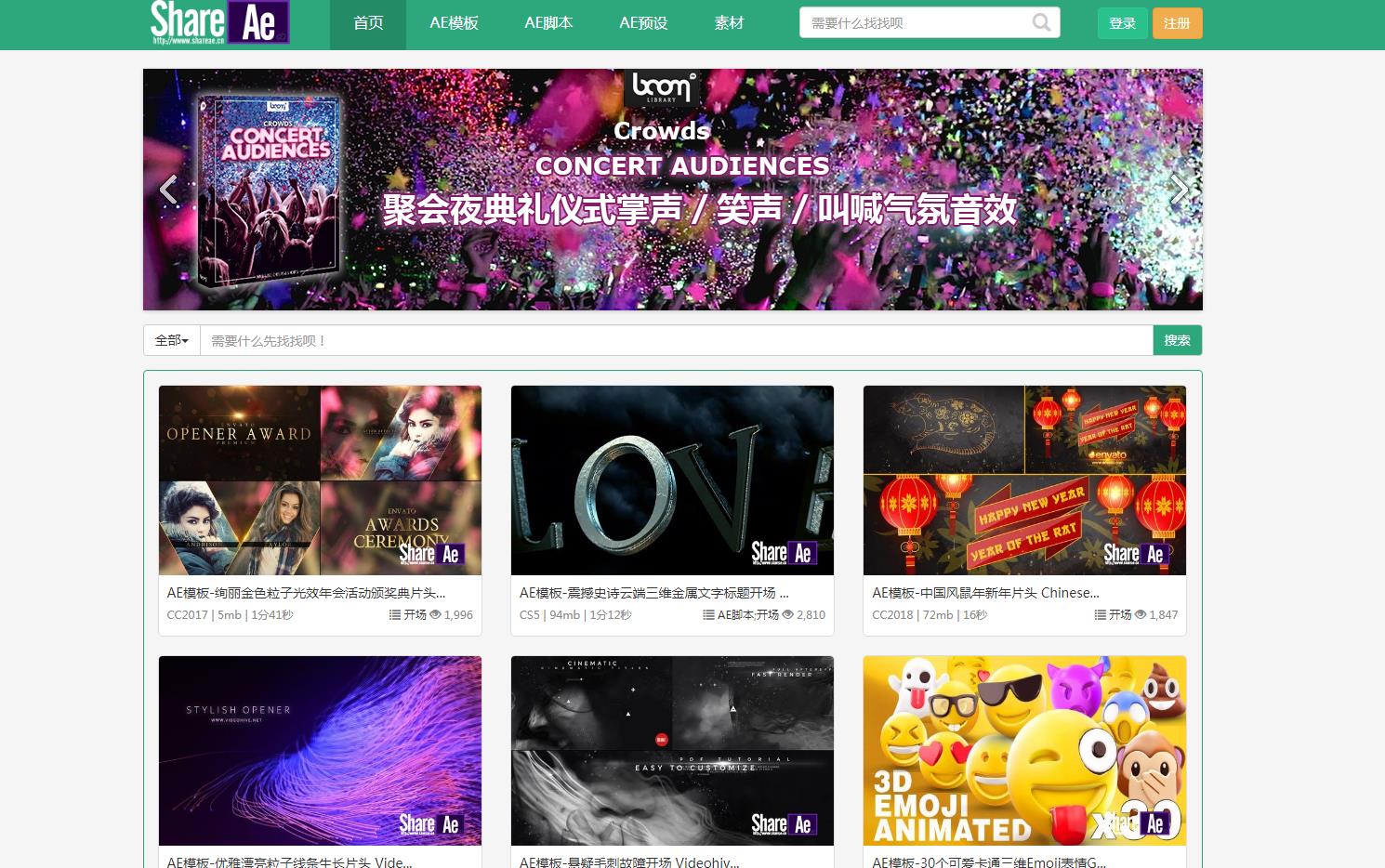 LookAE又叫大众脸,是国内的一个后期技术交流网站,除了AE模板外,还有PR和FCPX等模板,也基本上都是免费的,素材资源全面。