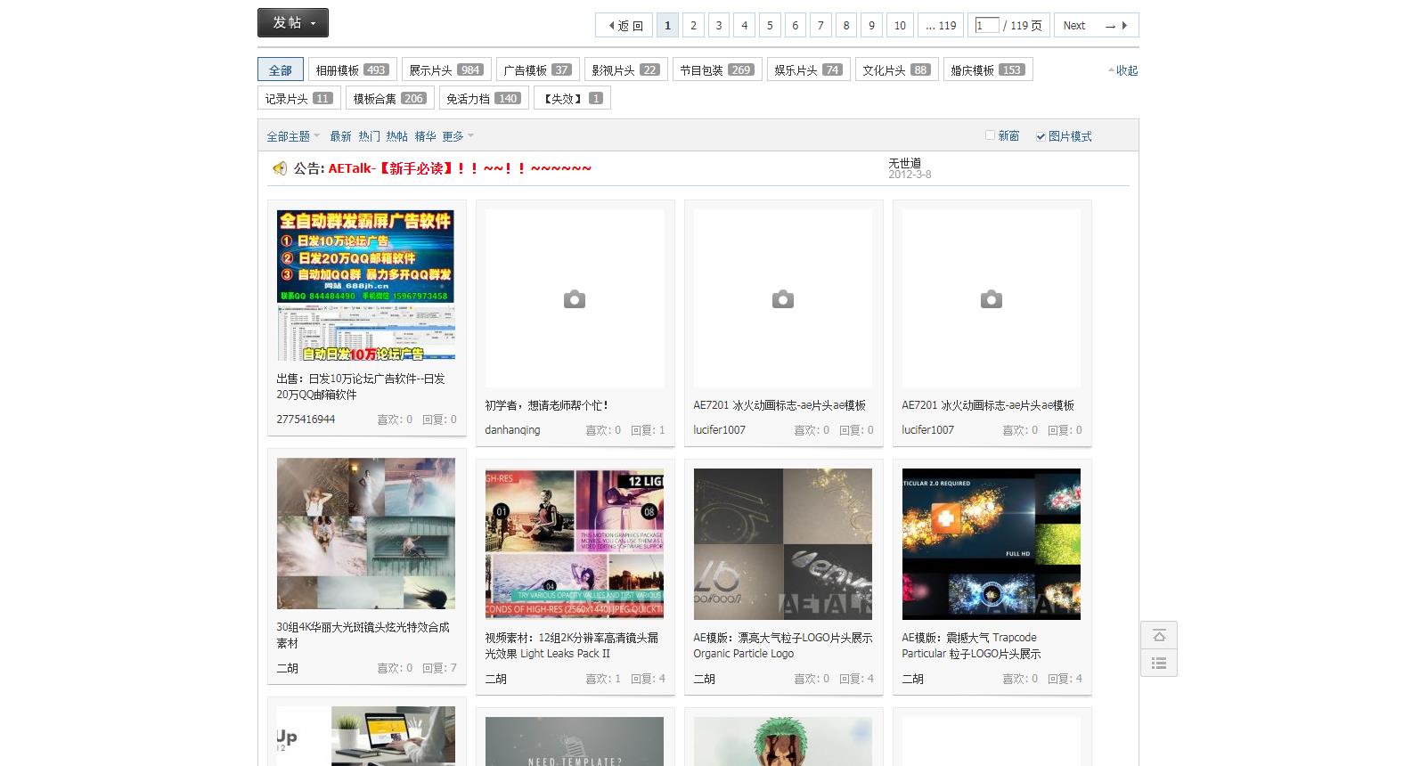 AEtalk是一个论坛性质的网站,会有很多人在网站上分享AE模板,也会有一些AE问题之类的探讨,就算不下载模板也值得关注。