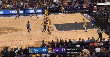 库里造隆多犯规,6-5;詹姆斯强打贝尔,无解上篮8-5,但汤神一记3分扳平比分8-8,老汉助攻麦基空接扣篮得手,10-8;但库里大号2分得手,10-10,波普接詹姆斯的背身击地传球,轻松上篮得手12-10,杜兰特马上还以颜色12-12;