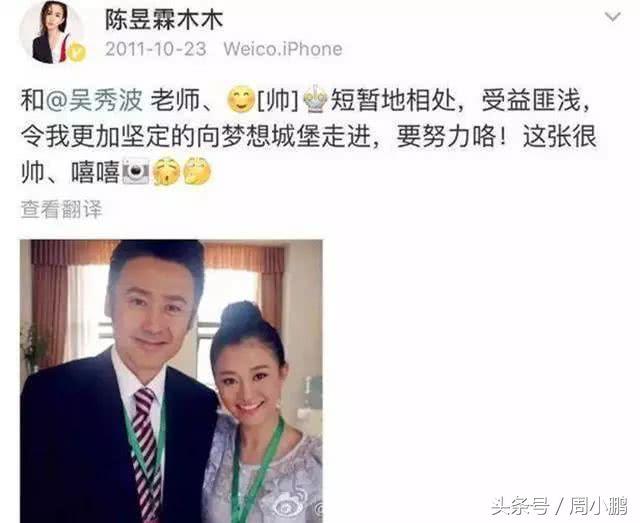 2011年,吴秀波和陈昱霖已经相识。陈昱霖正在拍摄首部作品——《下一个奇迹》,吴秀波也在参演行列。陈昱霖还在微博晒出两人合照,字里行间充满了对吴秀波的仰慕。