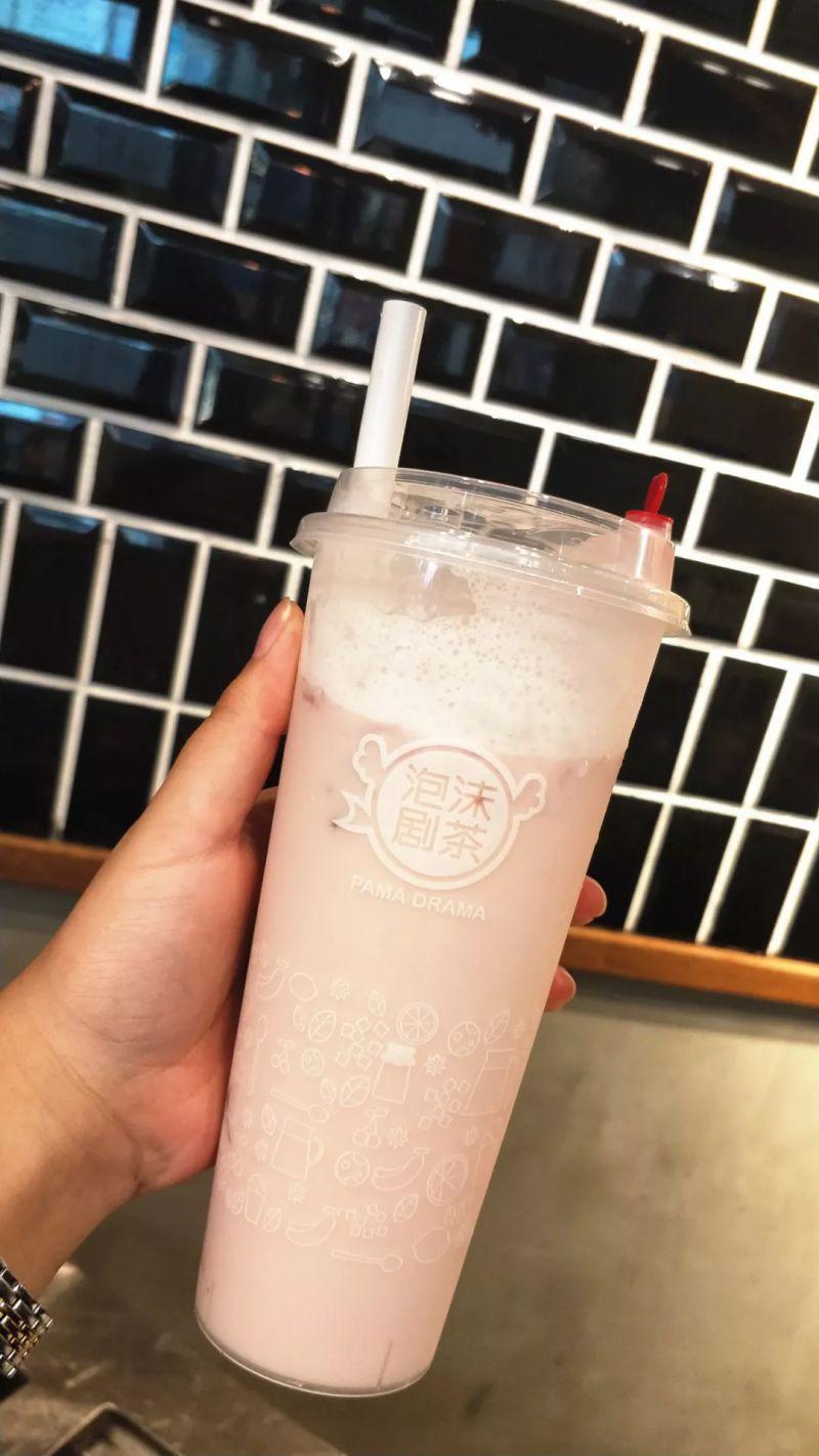 现萃茉莉绿茶茶汤与手工现打樱桃奶泡的完美结合,融合新鲜樱花花朵,清新解腻,其中奶盖是泡沫剧茶首款粉色奶盖!