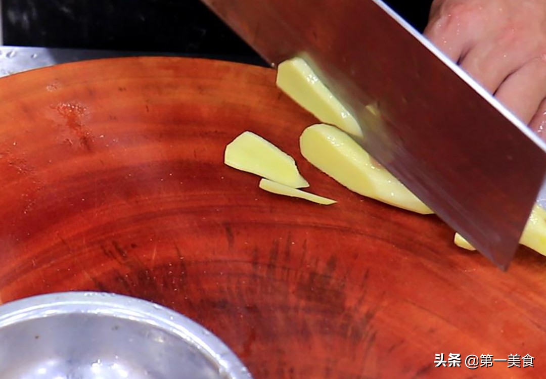 准备生姜一块,切成片备用。