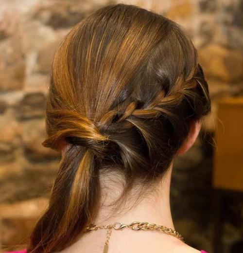 这款发型看起来有些复杂,实际上非常的简单易学。将头发打理成一个高高的髻,将髻分成一下两层,在上面的那层慢慢地扭出一条螺旋形的发髻,随意地缠绕在下面的髻上面即可。这一款发型和父母出门的场合相当配哦!